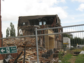 The previous page showed the works in 2002, now six years later in 2008 Ekco really have ended their presence in Southend. These photos were taken on August 13th 2008, and show the demolition of the factory in progress. At this point the offices block facing the main road has been largely demolished, just each end of the block remains. The picture below left shows one of the industrial workshops which were behind the main offices block, itself partially demolished. The picture below right shows the impressive stone main entrance, still standing amongst all the rubble surrounding it. The end of an era, but fortunately we still have many examples surviving of the groundbreaking radios built in the works to remind us of Ekco's contribution to the British Radio industry. The land has now become a housing estate.