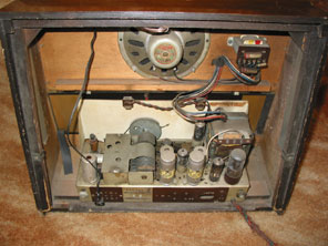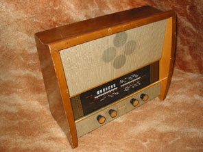 In 1957 the U198M chassis also became available in a small wooden cabinet, designated model U598. Also updated was the A262, which now becomes the A272 shown above, but with the same valve line up of ECC85, 6C9, 6F18, EABC80, 6P1, UU9. Costs are gradually being cut though: For instance, on the A262 the Murphy name appeared as a red enamel badge affixed between the control knobs. However for the A272 the Murphy name is simply part of the painting on the glass tuning dial. Continue to Model