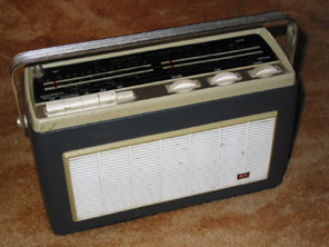 Further up the range is the B831, with a rather more "plasticky" cabinet. This cabinet is somewhat more curvaceous, which together with the liberal use of plastic and perspex meant this radio was probably more modern looking than the B818 in 1965. This set could also receive the higher quality VHF signals (as well as MW and LW), via its telescopic aerial. These receivers are still seen fairly frequently, so must have sold pretty well. The set retailed at £21.0.0 (incl pt.) and incorporated 9 transistors. Like the other radios on this page, the B831 featured an aerial socket that could be used for a car aerial or similar if the internal ferrite rod aerial was not providing satisfactory performance. Transistor line-up AF114, AF115 x 2, AF115 x 2, OC71, OC81D, OC81 x 2. Continue to
