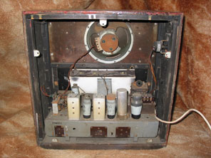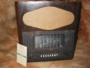 The TA92 and TU92 receivers pictured below were essentially the same, with differing power input arrangements. It can be noted that a mains transformer with rectifier valve mounted above is fitted to the TA92, (to the right of the chassis - rectifier valve currently missing from the photo for some reason!) whereas in the TU92 a dropper together with rectifier valve is fitted in the position of the mains transformer in the AC only set. There are other minor differences between the two sets, for instance notice the tuning scale back plate. On medium wave this set uses only four valves, however if one of the shortwave bands is selected an SP41 R.F. Pentode amplifier is introduced into the circuit before the TH41 frequency changer (SP181 before TH233 in TU92). The line drawings seen at the bottom of each page in this section of this website are all taken from a booklet produced by Murphy as a reference for dealers when setting part-exchange values, and the AC and AC/DC versions of the ‘92 receivers are the only sets to be individually listed and pictured. I don’t know the significance of this, perhaps it was just an oversight, but if you have any ideas email me at the contact address.