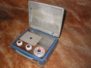 Pye P114BQ The battery only P114BQ was released a few months after the P131MBQ (shown on previous page), and was slightly smaller as the receiver did not need to house mains supply components, coupled with the fact that the receiver was less well specified anyway. It is described as being housed in a "jewel" case, as "jewel" case receivers are considered to be smaller than "attaché" case receivers (in an obvious reference to the "genuine article"). Instead of the metal chassis fitted in the P131MBQ, the P114BQ utilises a printed circuit board (PCB) as a component base. Operating on MW and LW, a simpler oversize dial and knob formed the tuning control for the P114BQ. The receiver was again available in two colour versions, with a frame aerial concealed within the lift-up lid. Costing £9.9.6 +pt it featured a valve line-up of DK96, DF96, DAF96, DL96. Continue to Radio Rentals 694 © COPYRIGHT RETAINED ON ALL TEXT AND PICTURES ON THIS SITE. |
